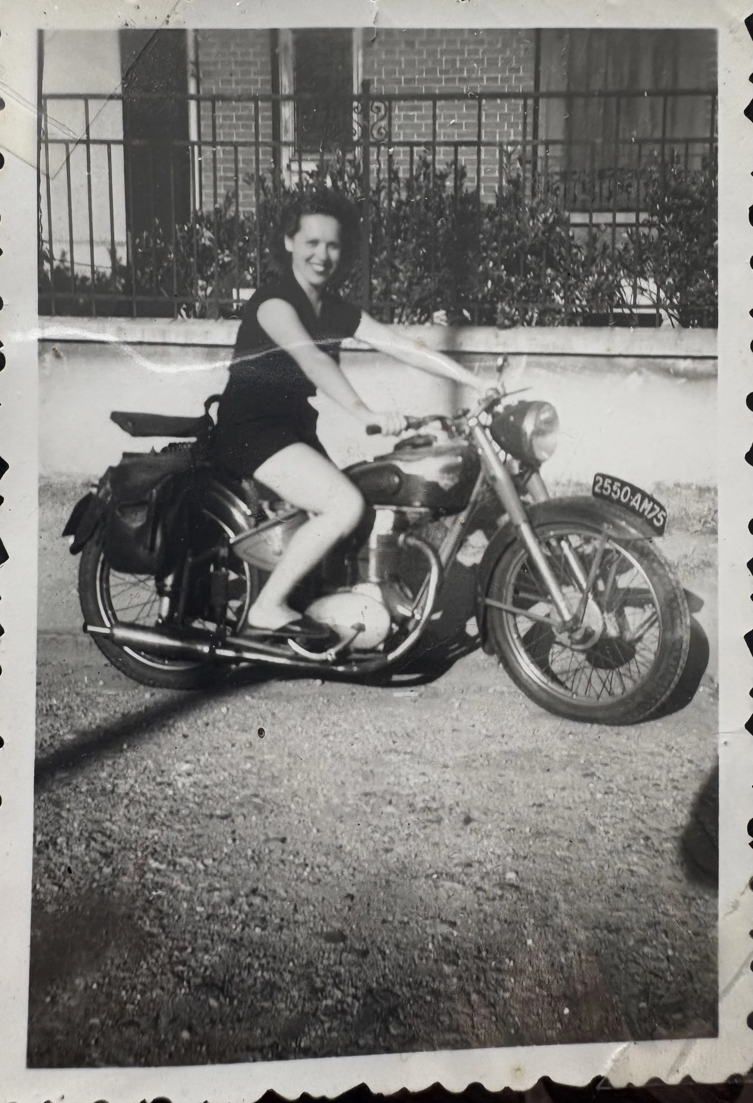 17 year old Denise on her younger brothers motorcycle